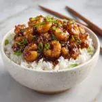 Just before serving, sprinkle sliced green onions and sesame seeds over the shrimp for a fresh crunch and visual appeal. These small touches truly make the dish feel complete and inviting.