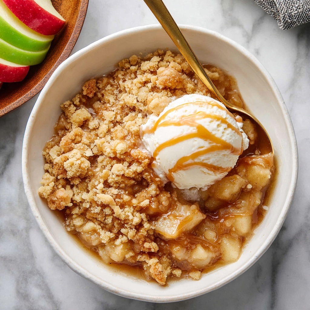 For that next-level touch, serve your apple crumble with a scoop of vanilla ice cream that melts softly over the warm dessert. A dollop of freshly whipped cream or a sprinkle of chopped toasted nuts can also bring extra texture and richness. Fresh mint leaves add a pop of color and a refreshing note.