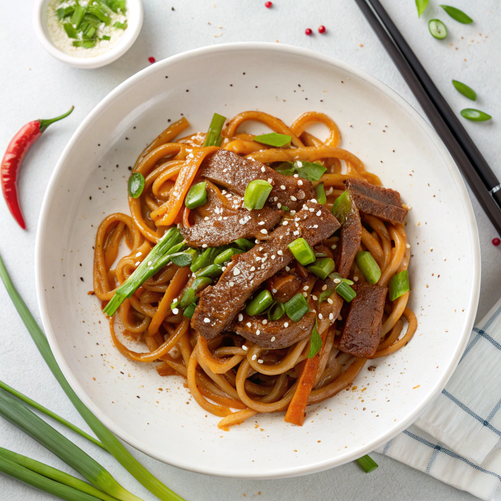 Yes! Add chili flakes while stir-frying the vegetables or drizzle some sriracha over the finished dish to give your Asian Beef Udon Noodles Recipe an extra kick. Adjust the spice level to suit your preference.