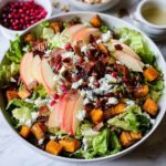 This Autumn Salad with Apple Cider Vinaigrette is a refreshing and vibrant dish perfect for the fall season. It combines crisp Romaine or Green Leaf lettuce with juicy tart apples, sweet dried cranberries, crunchy toasted pecans, savory crispy bacon, and tangy crumbled feta cheese. Topped with a homemade apple cider vinaigrette that balances sweetness and acidity with maple syrup and Dijon mustard, this salad offers a delightful mix of textures and flavors ideal for a light lunch or a festive side dish.