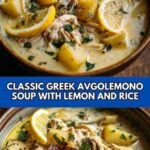 There’s something truly special about the comforting tang of Avgolemono (Greek Egg and Lemon Soup) Recipe that makes you feel like you’ve stepped into a warm Greek kitchen. It’s simple, elegant, and packed with love in every spoonful. I hope you’ll give this recipe a try, whether you want to brighten up a chilly day or impress friends with an authentic taste of Greece. Once you do, I bet Avgolemono will become one of your favorite go-to soups too!