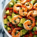 Grab a large mixing bowl and toss together your diced avocados, halved cherry tomatoes, finely diced red onion, jalapeño (if you’re using it), and the fresh chopped cilantro. This fresh vegetable mix forms the vibrant base of your Avocado Salsa Shrimp Salad: Fresh, Zesty & Flavor-Packed! Recipe and guarantees a colorful, flavor-packed foundation.