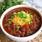 Fresh garnishes can elevate your chili experience to the next level. Try topping your bowl with a dollop of sour cream or shredded sharp cheddar cheese for creaminess, chopped green onions for a fresh bite, or a sprinkle of crushed tortilla chips for some delightful crunch. A squeeze of lime adds a bright contrast that brightens up the rich flavors beautifully.
