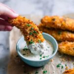 Crispy, flavorful baked chicken tenders coated in panko crumbs and glazed with a tangy honey lemon sauce, served with a creamy, zesty dipping sauce. An easy and delicious dinner option that is perfect for a quick meal or entertaining.