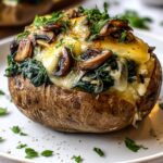 Delicious baked potatoes stuffed with a creamy mixture of sautéed spinach, mushrooms, and cheeses, perfect as a comforting vegetarian main or side dish. These baked potatoes are crispy on the outside and tender inside, enhanced with smoked paprika and garlic for extra flavor.