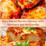 Baked Ricotta Chicken is a comforting Italian-inspired dish featuring tender chicken breasts topped with a creamy ricotta and parmesan mixture, layered with rich marinara sauce, and melted mozzarella cheese. This easy-to-make casserole is perfect for a family dinner and delivers a delicious blend of cheesy, garlicky flavors with a crispy, golden finish when broiled.