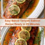 This Baked Teriyaki Salmon recipe offers a deliciously sweet and savory glaze made from a blend of brown sugar, soy sauce, honey, garlic, and a touch of cornstarch for thickening. Quickly prepared and baked at 400°F, the salmon turns out tender and flaky with a glossy teriyaki coating, perfect for a healthy weeknight dinner. Lemon wedges add a fresh, tangy contrast to the sweet sauce.