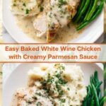 This Baked White Wine Chicken Breasts recipe features tender boneless, skinless chicken breasts baked in a savory, creamy white wine sauce infused with garlic, Italian seasoning, and Parmesan cheese. Perfectly cooked in the oven for a simple yet elegant meal, it’s a great dish for weeknight dinners or entertaining guests.