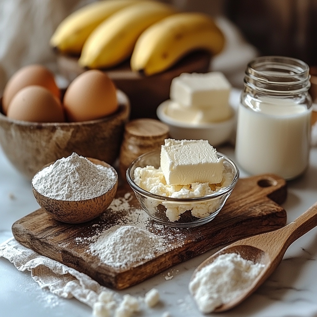 The magic of this Banana Bars with Cream Cheese Frosting Recipe lies in its simplicity, with each ingredient playing a vital role to create the perfect texture and flavor. You’ll find that these everyday staples come together to make a moist, tender base and a frosting that is silkily smooth and sweet.