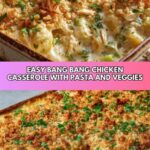 Bang Bang Chicken Casserole is a flavorful and easy-to-make baked dish that combines tender chicken, pasta, fresh vegetables, and a spicy-sweet Bang Bang sauce. Perfect for a comforting weeknight dinner, this casserole features a creamy sauce made with mayonnaise, sweet chili sauce, and sriracha, baked to bubbly perfection with melted mozzarella cheese.