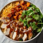 Elevate your BBQ Chicken & Roasted Sweet Potato Bowls Recipe with some fresh garnishes such as chopped cilantro or parsley for a pop of herbal brightness. A squeeze of lime juice adds zest that cuts through the richness, or a dollop of Greek yogurt can introduce a creamy tang that complements the BBQ sauce beautifully.
