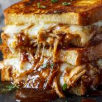 A delicious and savory BBQ Chicken Grilled Cheese sandwich combining tender shredded chicken coated in tangy BBQ sauce with melted cheese and optional fresh toppings, all grilled to golden perfection for a comforting meal perfect for lunch or dinner.