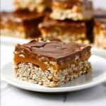 - Add Top Oat Layer and Chill: Spread the remaining half of the oat mixture evenly on top of the chocolate layer, gently patting it down to create a uniform top layer. Refrigerate the bars for at least 2 hours to set completely before slicing and serving.