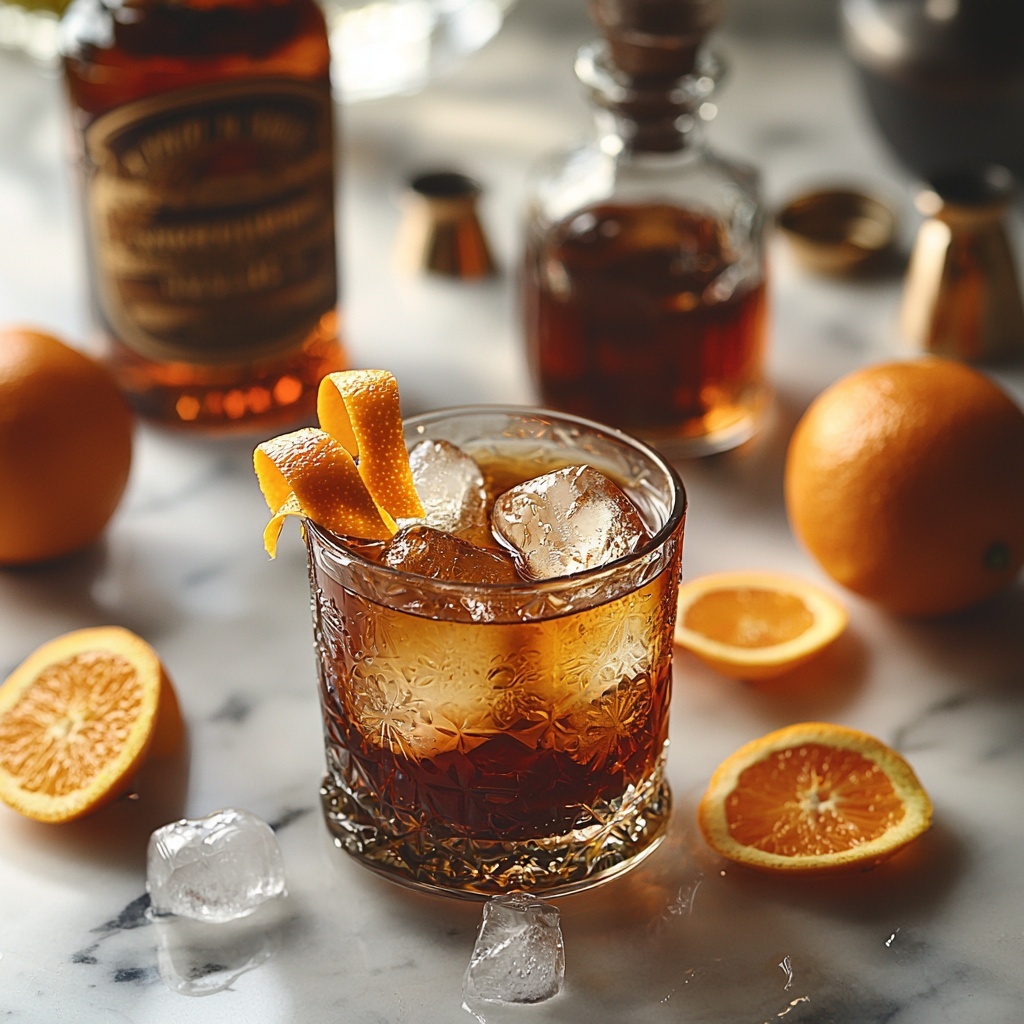 Impress your guests by serving this cocktail in unique glassware or presenting the orange peel as a spiral perched on the rim. You might also experiment by rimming the glass lightly with sugar or a mixture of sugar and spices to add a subtle texture before pouring the drink.