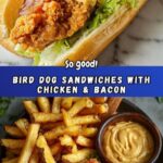 Bird Dog Sandwiches are a fun and delicious twist on the classic hot dog, featuring crispy chicken tenders, bacon, fresh lettuce, and a tangy honey mustard or spicy mayo sauce inside buttery toasted hot dog buns. Perfect as a quick and satisfying meal that combines savory, crunchy, and creamy flavors.