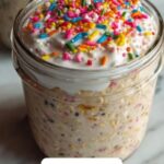 This Birthday Cake Overnight Oats recipe combines creamy rolled oats soaked in almond milk with a touch of vanilla and almond extracts, sweetened naturally with maple syrup, and topped with colorful vegan sprinkles. It’s a quick, no-cook breakfast that tastes like a celebration in a jar, perfect for a nutritious and fun start to your day.