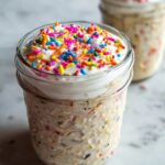 This Birthday Cake Overnight Oats recipe combines creamy rolled oats soaked in almond milk with a touch of vanilla and almond extracts, sweetened naturally with maple syrup, and topped with colorful vegan sprinkles. It’s a quick, no-cook breakfast that tastes like a celebration in a jar, perfect for a nutritious and fun start to your day.