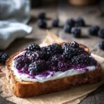 Take your fresh blackberries and gently smash them with a fork or the back of a spoon to release their juice, which melds beautifully with the yogurt. Then, spread them across the toast, ensuring every bite includes that tangy, juicy berry goodness.