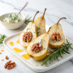 This Blue Cheese Stuffed Pears Recipe keeps things beautifully simple with a handful of fresh, quality ingredients. Each one plays a pivotal role: the pears provide a firm yet juicy base, the blue cheese delivers a creamy, savory contrast, walnuts add a satisfying crunch, and honey ties it all together with a luscious sweetness. Fresh thyme is the secret sprinkle that lifts the flavors with its herby brightness.