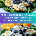 A vibrant and refreshing Blueberry Spinach Salad featuring fresh baby spinach, juicy blueberries, crunchy toasted walnuts, and creamy feta cheese, all tossed in a zesty orange poppy seed dressing. This light and nutritious salad is perfect for a quick lunch or a healthy side dish.