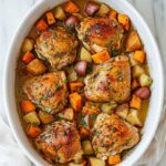 This Braised Chicken Thighs with Vegetables Recipe is hearty enough to enjoy on its own, but serving it alongside crusty artisan bread is a fantastic idea for soaking up every last bit of savory broth. For a lighter contrast, a crisp green salad with vinaigrette pairs wonderfully and balances the meal perfectly.