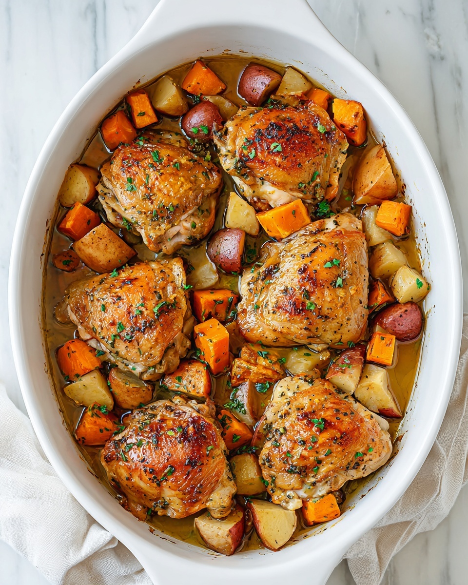 This dish freezes well, making it a smart batch-cooking option. Cool everything completely before transferring to a freezer-safe container. When thawed, the chicken might lose some crispness on the skin, but the flavors remain rich and comforting.