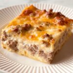 A hearty and easy-to-make breakfast casserole featuring a crescent roll crust, savory breakfast sausage, beaten eggs, and melted cheddar cheese. Perfect for a crowd or a weekend brunch, this casserole combines classic breakfast flavors baked together for a satisfying meal.