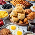 - Select and Prepare Items: Choose your preferred breakfast items from the categories listed. Cook or heat each item as needed – scramble, fry, or boil eggs; bake or warm breads; cook meats thoroughly; prepare potatoes; and wash and slice fruits and vegetables.