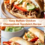 This Buffalo Chicken Cheesesteak recipe combines spicy buffalo chicken with melty provolone cheese on toasted hoagie rolls, topped with creamy ranch or blue cheese dressing and optional fresh toppings for a flavorful, satisfying sandwich perfect for a quick and easy meal.