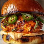 This Buffalo Chicken Jalapeño Burger is a spicy and flavorful twist on the classic burger. Featuring ground chicken mixed with buffalo sauce and bold spices, it’s grilled to perfection and topped with melted cheese, fresh jalapeños, and creamy ranch or blue cheese dressing. Perfect for those who love a bit of heat with their burger, this recipe delivers a delicious balance of spicy, tangy, and savory flavors.