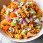 A flavorful and zesty Buffalo Chicken Pasta Salad combining tender rotini pasta, spicy buffalo chicken, fresh vegetables, and creamy blue cheese dressing. Perfectly chilled and tossed to meld bold flavors for a deliciously satisfying dish ideal for lunch, picnics, or potlucks.