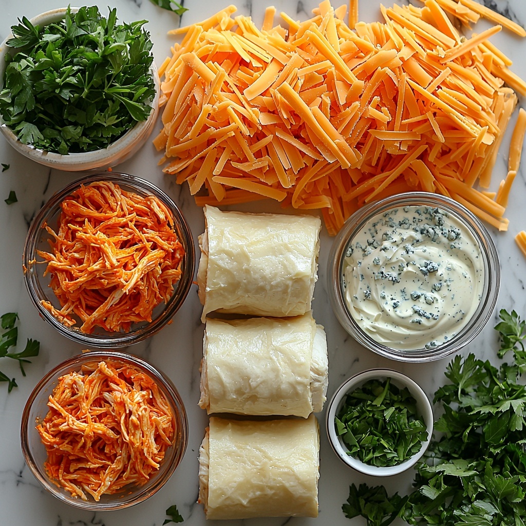 These ingredients are simple, fresh, and work harmoniously to create the ultimate Buffalo Chicken Roll-Ups Recipe. Each component brings something special to the dish—whether it’s the creamy richness, the spicy punch, or the flaky, buttery dough that wraps it all together.