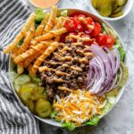 These Burger Bowls are a fun and delicious low-carb twist on classic burgers, featuring seasoned ground beef, fresh vegetables, crispy fries, and a homemade burger sauce all layered in a bowl. Ready in just 35 minutes, they offer a satisfying and flavorful meal without the bun.