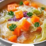 This Cabbage Fat-burning Soup is a hearty, low-calorie, and nutrient-packed vegetable soup perfect for a light meal or detox plan. Loaded with fresh vegetables like cabbage, carrots, bell peppers, and leafy greens, it’s designed to support weight loss with its high fiber content and metabolism-boosting ingredients. Made on the stovetop with simple herbs and vegetable broth, this vegan-friendly soup is both comforting and healthy.