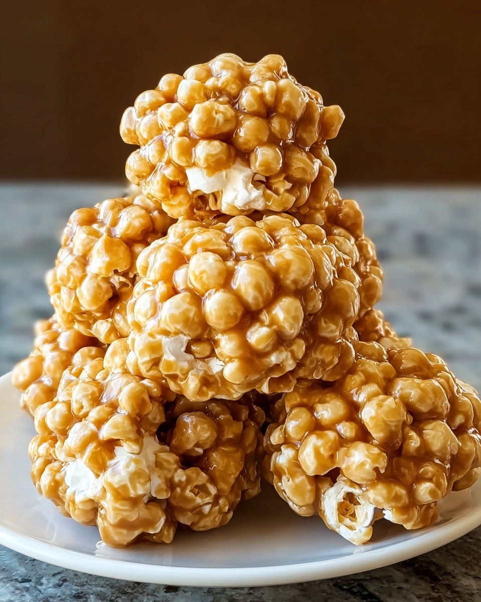 Delicious and easy-to-make caramel popcorn balls featuring a rich, buttery caramel coating enveloping crunchy popcorn, perfect for snacks or party treats.
