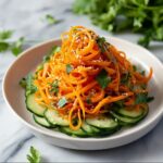This fresh and vibrant Carrot Sesame Salad combines shredded carrots with a flavorful sesame dressing, enhanced by ginger, honey, and cilantro. Perfect as a light side dish, this no-cook salad offers a delightful mix of sweet, tangy, and nutty flavors with a crisp texture.