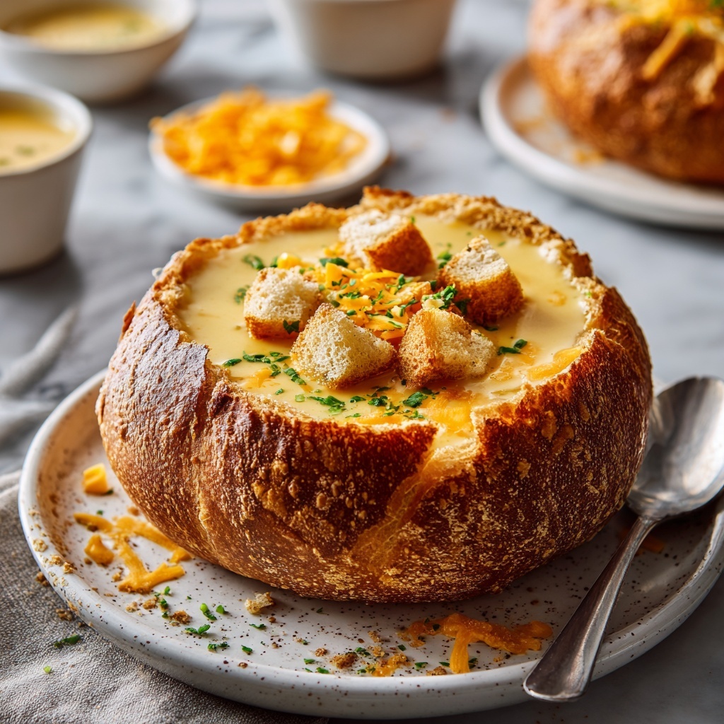 Ladle the piping hot soup into the hollowed bread bowls, then sprinkle extra shredded cheddar or fresh herbs on top for gorgeous color and added flavor. Serve immediately and watch how inviting and comforting this presentation is—the contrast of crunchy bread and creamy soup is irresistible.
