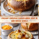 I hope you feel inspired to dive into this Cheddar & Cauliflower Soup in Mini Bread Bowls Recipe—it’s truly a joy to make and even more delightful to share. Whether you’re craving cozy comfort food or aiming to impress at a gathering, this recipe strikes the perfect balance of simplicity and elegance. Give it a go, and savor every creamy, cheesy, bread-filled bite!