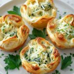 If you love all things cheesy, savory, and full of fresh, vibrant greens, then you are going to absolutely fall for this Cheesy Spinach and Artichoke Pinwheels Recipe. Imagine bite-sized, golden pastries bursting with creamy spinach and artichoke filling, melted mozzarella, and a hint of Parmesan, all wrapped in perfectly flaky crescent dough. These pinwheels are not only a feast for the eyes but also a reliably delicious appetizer or snack that will have everyone asking for more. Whether you’re preparing for a casual get-together or a festive occasion, this recipe brings warmth, comfort, and irresistible flavor to your table.