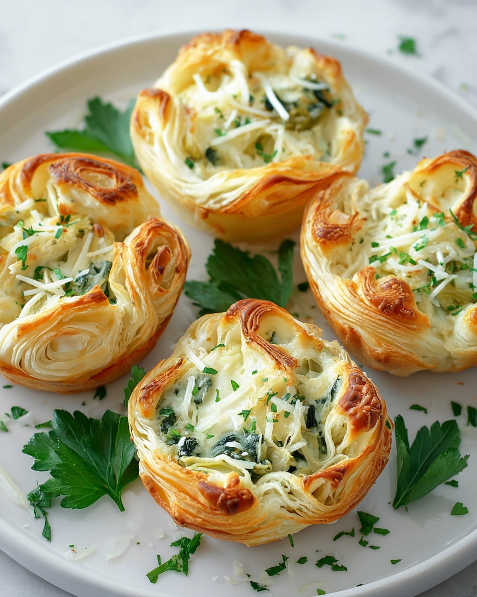 Once baked, sprinkle the freshly chopped parsley over the warm pinwheels. This simple garnish not only brightens the look but adds fresh flavor, rounding out the Cheesy Spinach and Artichoke Pinwheels Recipe beautifully.
