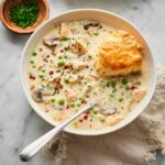 Chicken a la King is a classic American comfort food featuring tender chicken pieces simmered in a creamy mushroom sauce with peas and pimentos. Served over warm baked biscuits, this dish combines rich flavors and a velvety texture that’s perfect for a hearty meal.