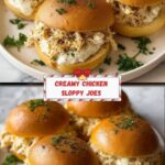 Chicken Alfredo Sloppy Joes are a creamy and flavorful twist on the traditional sloppy joe, featuring ground chicken cooked in a rich Alfredo sauce with Italian seasoning and melted mozzarella. Served on toasted sandwich rolls and topped with Parmesan cheese and fresh parsley, this easy-to-make dish offers a comforting and delicious meal perfect for a quick weeknight dinner or casual gathering.