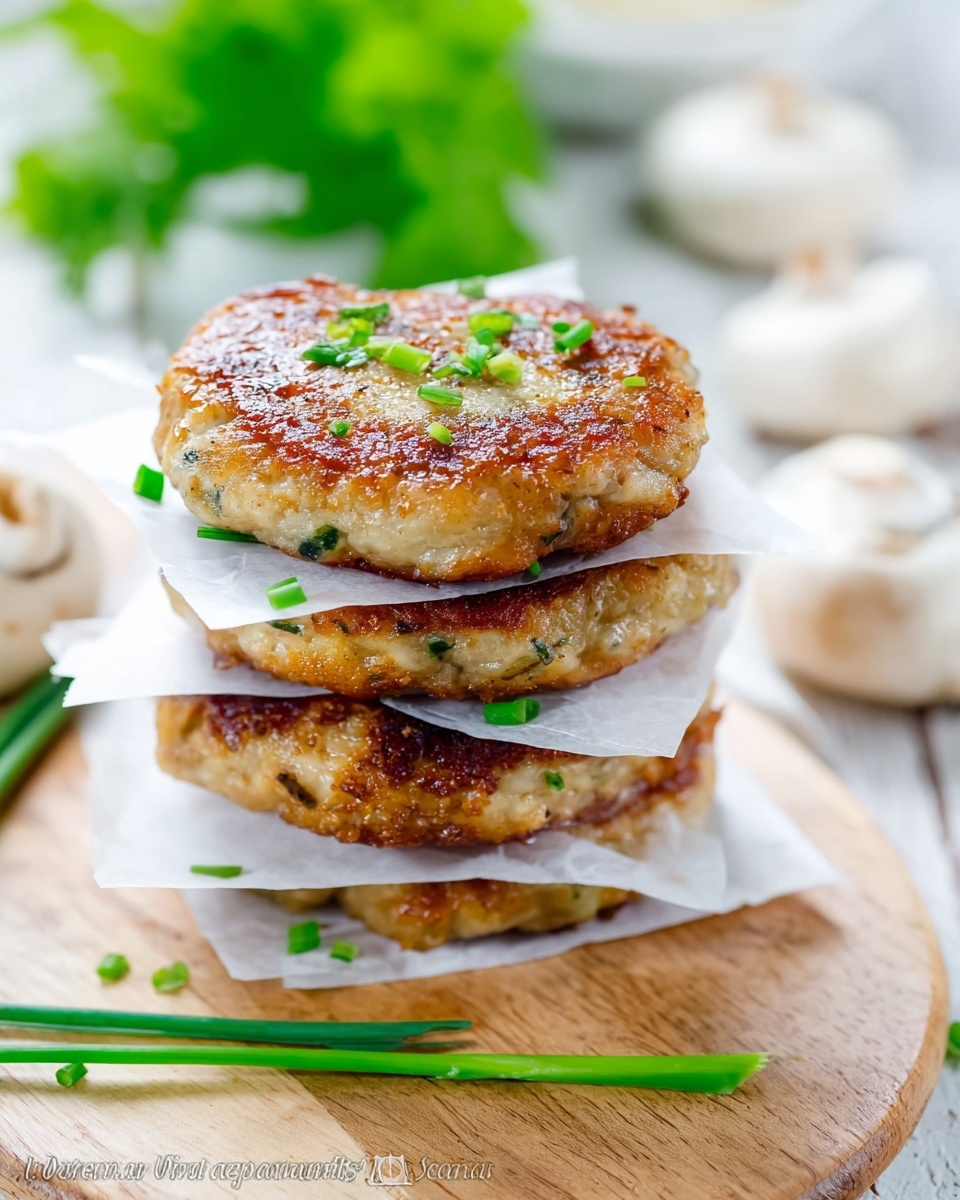Chicken and Mushroom Patties (Kotlety) are flavorful, juicy patties combining ground chicken and sautéed mushrooms with a touch of onion and breadcrumbs. These golden, pan-fried patties are perfect as a hearty appetizer or main dish, offering a comforting texture and well-balanced savory taste.