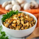 Chicken and Mushroom Wedding Salad is a savory, hearty salad featuring sautéed chicken breast, golden mushrooms, tender sautéed carrots and onions, and crunchy baby dill pickles, all combined with a light touch of mayo for a creamy texture. This salad offers a perfect balance of flavors and textures, making it an ideal dish for gatherings or a wholesome meal.