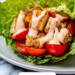 Lay a lettuce leaf on a piece of parchment paper and sprinkle lightly with salt to enhance the natural crispness. Layer on half of the shaved Parmesan cheese, crunchy croutons, and juicy chicken slices. Drizzle with a generous spoonful of the freshly blended Caesar dressing. Add sliced Roma tomato on top, finish with more dressing and the remaining Parmesan. This layering ensures every bite has a perfect balance of creamy, crunchy, tangy, and savory goodness.