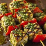 These Chicken Pesto Kabobs feature tender, marinated chicken thighs paired with juicy cherry tomatoes, grilled to perfection and bursting with vibrant pesto flavor. Perfect for a quick and delicious summer meal, these kabobs are easy to prepare and can also be baked for a convenient indoor option.