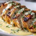 - Prepare the Garlic Cream Sauce: In a small saucepan, melt butter over medium heat. Add the minced garlic and sauté for about 1 minute until fragrant. Whisk in the flour and cook for another minute to form a roux. Gradually whisk in the heavy cream, stirring continuously to avoid lumps. Bring the mixture to a gentle simmer, then stir in the grated Parmesan cheese. Season with salt and pepper. Allow the sauce to thicken for 2 to 3 minutes while stirring occasionally.