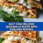 A delicious and satisfying Chile Relleno Quesadilla recipe featuring roasted poblano peppers, Oaxaca cheese, and queso fresco, folded into warm flour tortillas and cooked to golden perfection. Perfect for a quick and flavorful vegetarian main course with authentic Mexican flair.