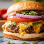 These Chipotle Cheddar Chicken Burgers are packed with smoky, spicy flavors and topped with melted cheddar cheese. Made with ground chicken, chipotle peppers in adobo sauce, and aromatic spices, these juicy grilled patties are perfect for a flavorful and satisfying meal. Served on toasted buns with fresh lettuce, tomato, and a creamy chipotle mayo, these burgers bring a delicious twist to classic chicken sandwiches.