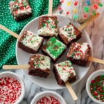 Celebrate the holidays with these festive Christmas Brownie Pops, featuring rich, chewy brownies dipped in smooth white chocolate and decorated with colorful holiday sprinkles. Perfect for parties or gifting, these fun-to-make treats bring a delightful twist to traditional brownies on a stick.
